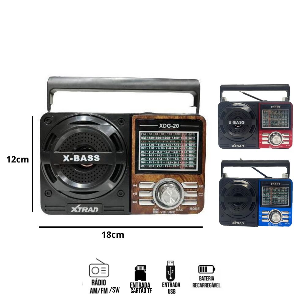 Este rádio portátil une o charme do design analógico com a praticidade da tecnologia atual. Compacto e leve (apenas 700g), ele é o companheiro ideal para viagens, acampamentos ou para dar aquele toque especial na sua cozinha ou escritório.